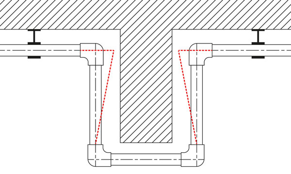 Las opciones más habituales para compensar los cambios de longitud son la instalación de un dilatador en L o un arco de dilatación en U.