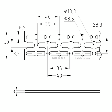 Perfil StaboFix®, 50 x 3 mm, longitud: 2,000 mm, galvanizado