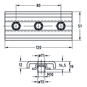 MPR-Patín deslizante M10 para carriles MPR- 41/21-41/124, galvanizado